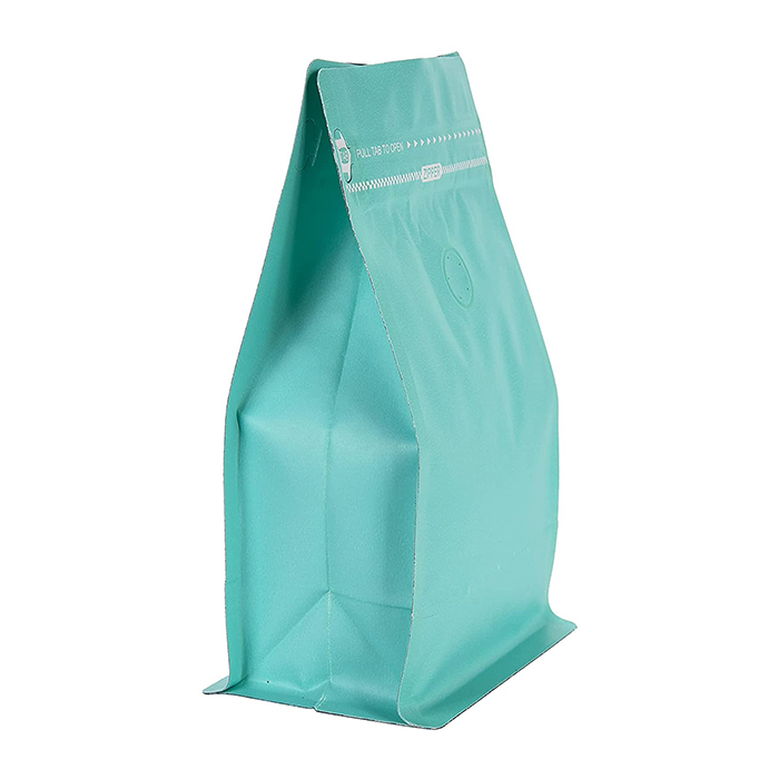 ఈ బ్లూ ఫ్లాట్ బాటమ్ మ్యాట్ అల్యూమినియం ఫాయిల్ జిప్పర్ కాఫీ బ్యాగ్తో కూడిన వాల్వ్ను కాఫీ గింజలు లేదా కాఫీ పౌడర్ ప్యాకేజింగ్గా ఉపయోగించవచ్చు. వాల్వ్ అనేది వన్ వే డీగ్యాసింగ్ వాల్వ్.
